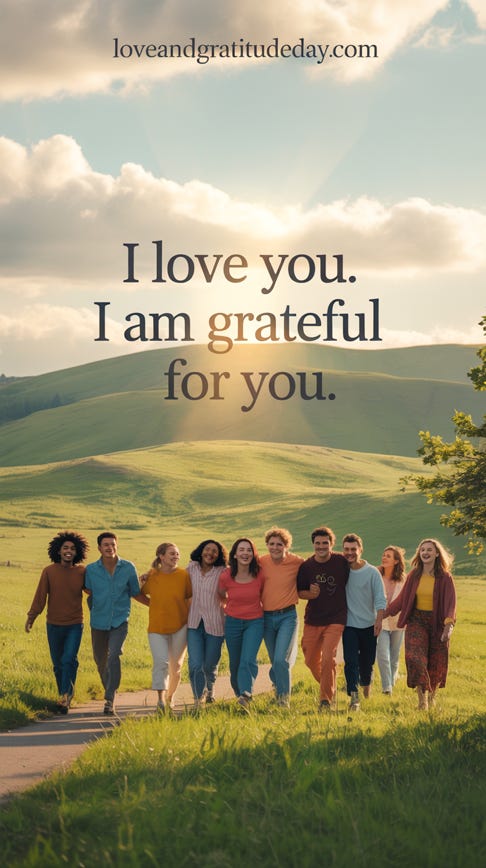 Use the images below or get creative and make your own! (right click to save or share). Make sure to post them on Social Media with the hashtag #LoveandGratitudeDay and help us share love and gratitude with the world!